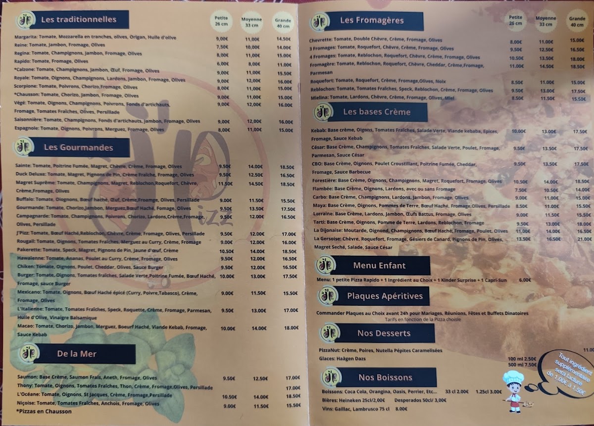 Welcome to La J’pizz de Saint-Martial, a delightful pizza takeaway nestled in the heart of Montauban, France. Located at 3559 Rte de Saint-Martial, this charming eatery offers an extensive menu brimming with delectable pizza options that cater to every palate. Customers rave about the impeccable quality-to-price ratio, with standout reviews highlighting the generous toppings and mouthwatering flavors. The friendly staff enhances the experience, ensuring prompt and cheerful service.